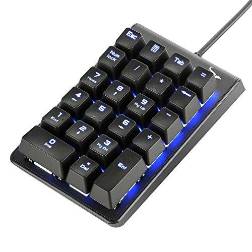 メカニカルなデザインがかっこいいテンキー。青色のLEDバックライト機能がついているので、暗い場所でもキーを確認しやすいのがポイントです。